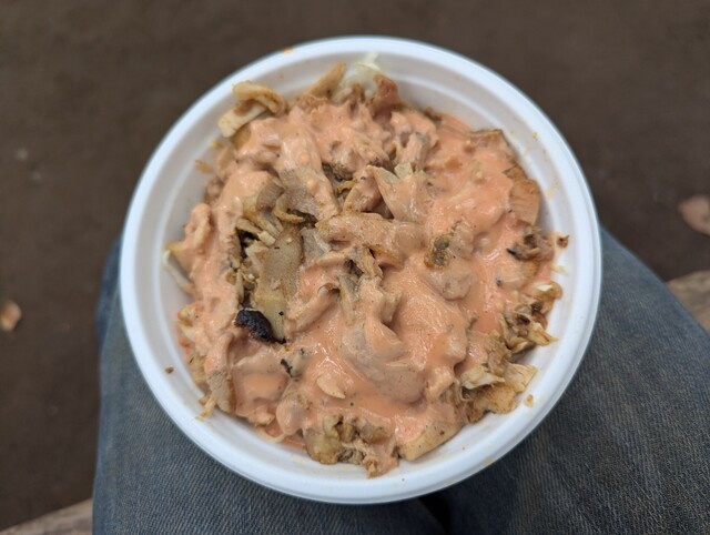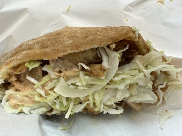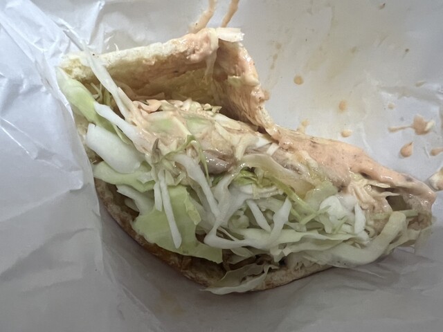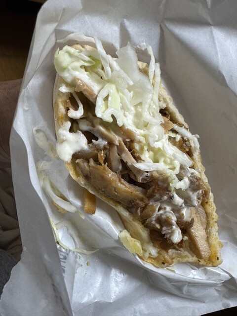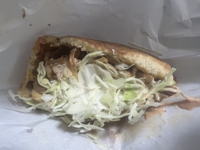 ケバブサンド350円のお店だ。改めて350円は安いよね〜。 ジャーに入れられたお肉をたっぷりと詰めて。甘口ソース、このソースがなかなかに美味い。 肉は硬いところとそうで... 詳細を見る