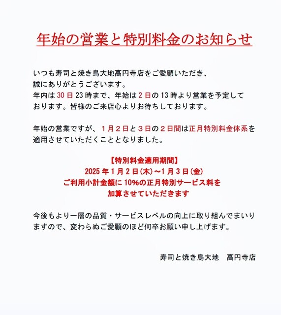| ジャンル | 居酒屋、寿司、焼き鳥 |
