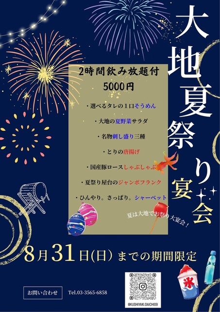 | サービス | 2時間半以上の宴会可、お祝い・サプライズ可(バースデープレート)、ペット可 |