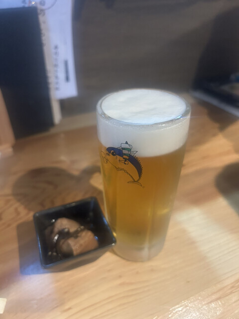 かつて寿司屋が入ってた跡地に最近できた居酒屋「寿司と焼き鳥 大地」へ。メニュー見たら、とりあえず、酒が199円からあって生ビールも299円で笑う。