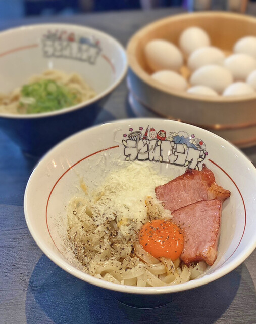 北海道小麦100%の自家製麺が自慢!平太麺のつるもち食感のうどんが楽しめます♪定番をはじめ、革新的なメニュー、ヴィーガン対応のメニューもご用意!中でもおすすめの「国産和牛サーロインすき焼きうどん」は、まず召し上がってほしい当店ならではの一皿です。マキシマムこいたまごと、明太子が丸ごと入った「明太釜玉バターうどん」も必見!デートやご家族でなどシーンに合わせて使えるお席があり、立ち食い席もございます◎