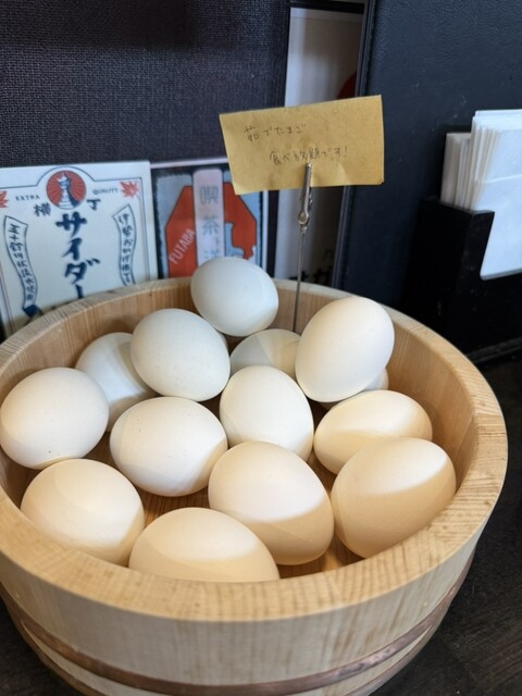 待っている間にカウンターにあるサービスのゆで玉子を殻を剥いて食べて待つ。2個食べちゃった。