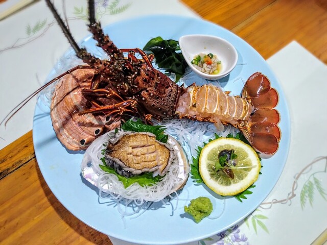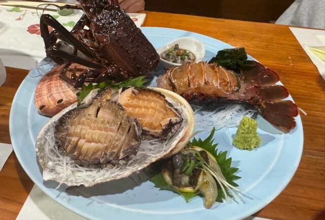 お店に近づくやいなや磯の香りが。なにやら伊勢海老とかあわびとか豪勢な魚介が安価で味わえるというあわび亭さんへ初訪問。海辺でもないのにこんなに磯の香りを楽しめるなんて!