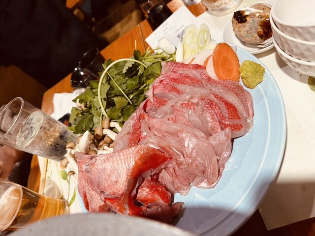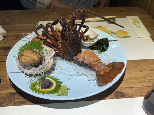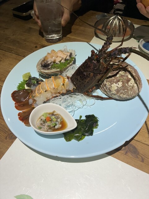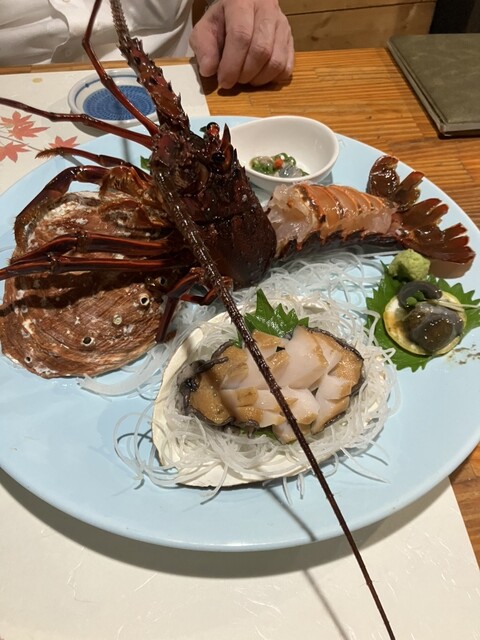 鮑の天ぷら、あわびの踊り焼き、伊勢海老、キンメのしゃぶしゃぶと嬉しい楽しい料理に感服。お酒も日本酒、ワイン...