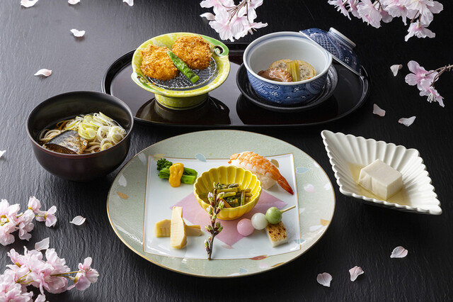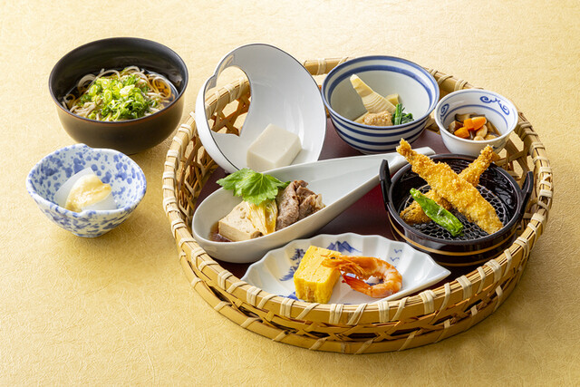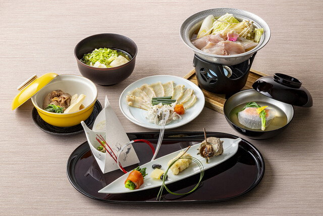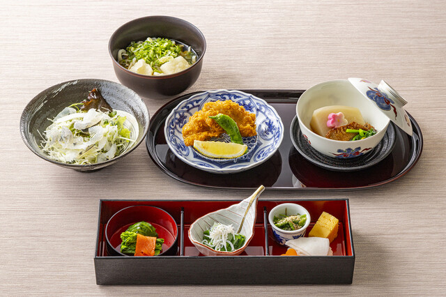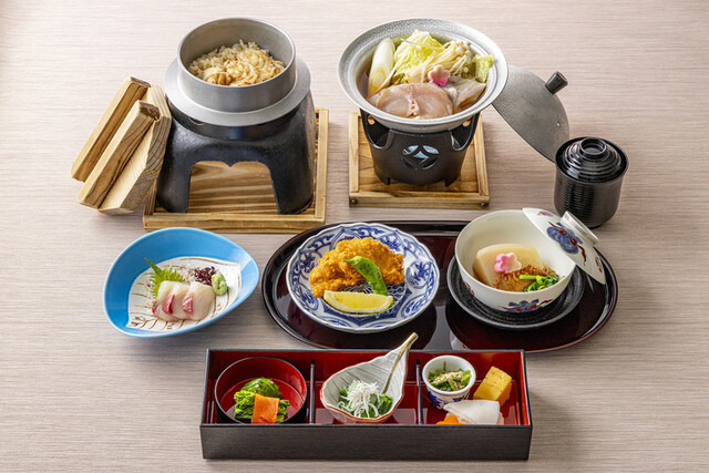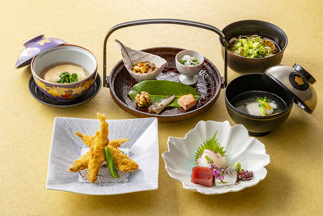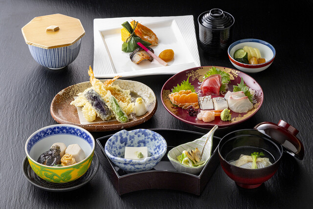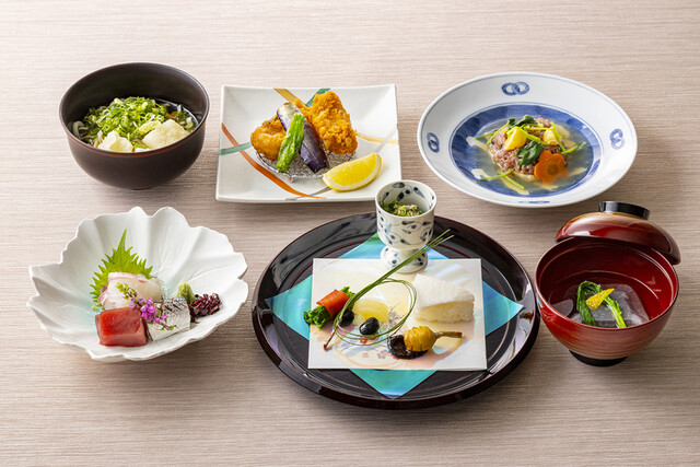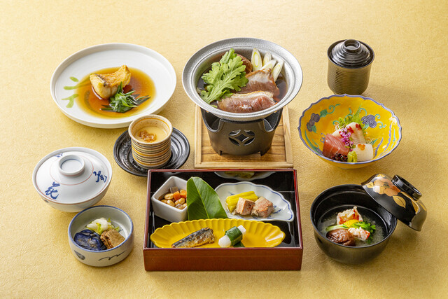 四季折々の食材を使用した繊細で色彩豊かな料理。 御膳料理から本格的な会席料理 まで取り揃えております。 また一般席の他、20名まで対応可能な個室もご用意。 ご家族でのご会食、慶事や法事など様々なシーンに合わせてご利用ください。