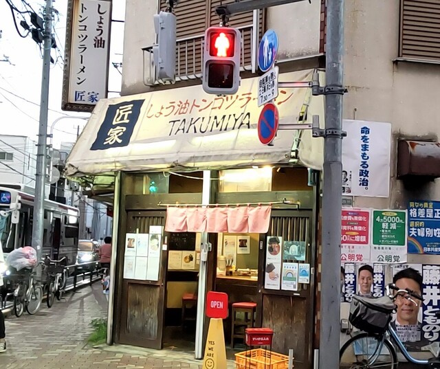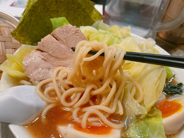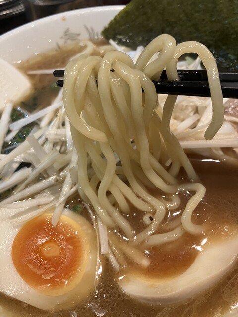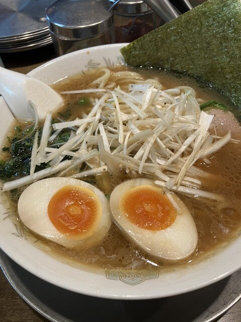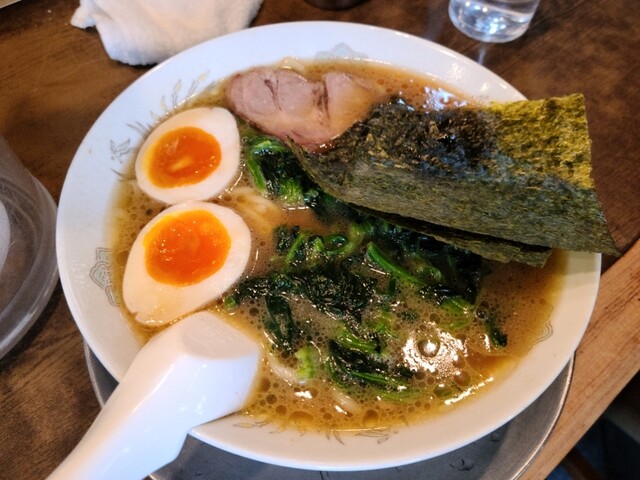 ◉しょうゆとんこつラーメン(太麺)+白飯 練馬地区の老舗中の老舗店。 ツルツルで噛むとプチッと弾ける丸い麺に煮詰まった豚骨醤油スープが絡むぅぅぅ!!!! 卓上の生姜で味変... 詳細を見る