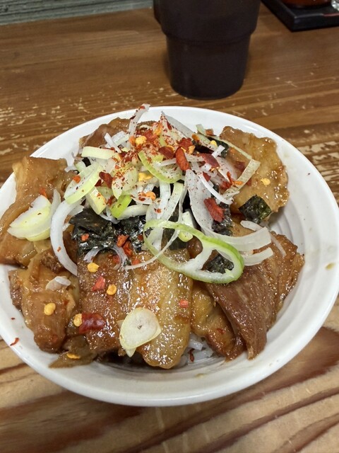 ここにきたらめちゃでかトロ豚は必須、思わずつけてしまった。匂いを気にしにんにくは抜きで注文