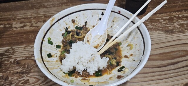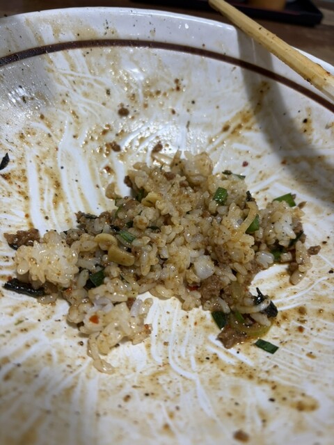 パンチもきいてて、最後ライスも無料で頼めたため、残りの汁と...
