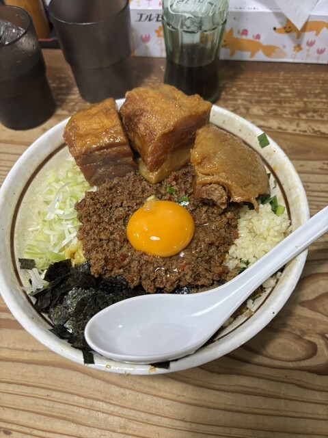 まず見た目からしてパンチ強め。チャーシュー、背脂、にんにく、卵黄…とにかく“ジ...