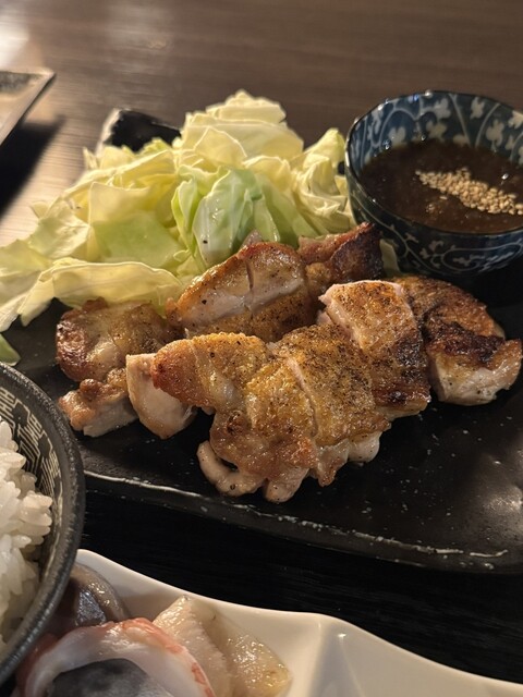 住宅地に構える炉端焼きの居酒屋さん。 基本的に夜営業だけど、平日はランチもやってるみたい。 きっと夜は炉端焼きが用意されるであろうカウンター。 民芸調の落ち着いた雰囲気です。 ランチに注文したのは信州美味だれ鶏定食(1000円)。 メインの鶏もも肉はボリューミーな250g。 皮サクサ... 詳細を見る