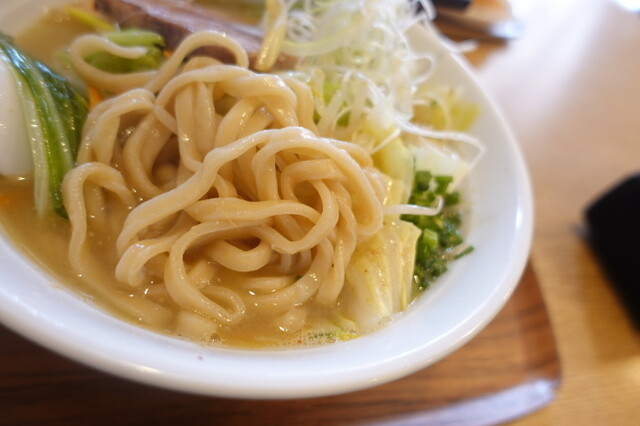 麺は細麺と太麺選べたため、エビは細麺、野菜は太麺でお願いしました。