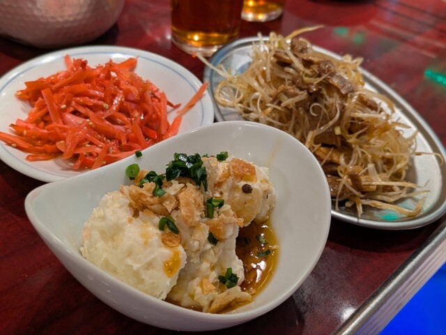 2020/5にオープン。 オーナーの呼びかけで、どんどんお客さんが入ってくる。 なんとなく屋台ぽいお店の雰囲気に魅了されれ、 私もその中の1人 一見カウンターのみのこじんまりしたお店だけど、 実は奥に小さいな個室が2つあると! 《感想》 店の名前から餃子専門店と感じるけど、 まずは麻婆豆腐と焼売を頼むべし!! 《注文したもの》 お通し:かまぼこと紅生姜ごま油和え これ... 詳細を見る