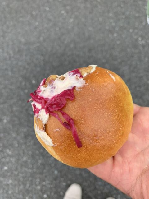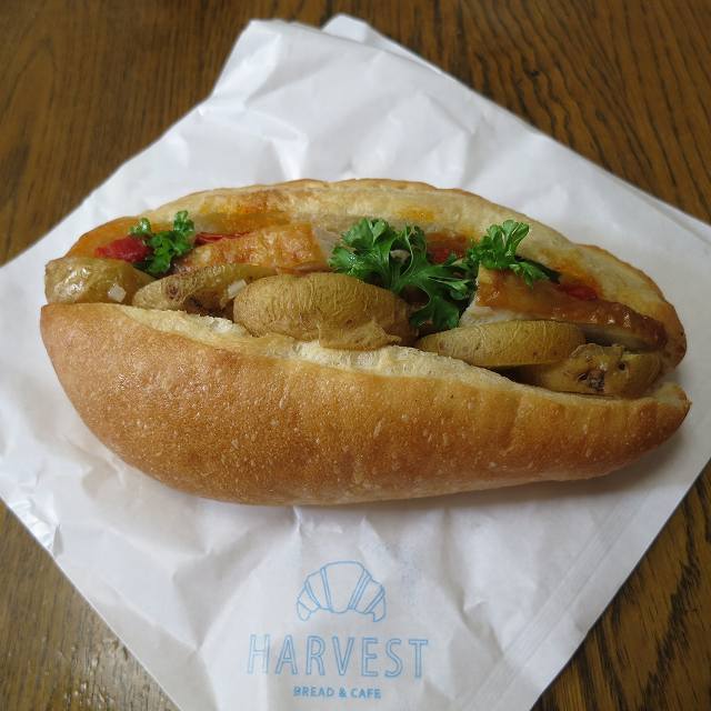 土曜日の11時過ぎに2名でイートインを利用。先客か一組だけいらっしゃいました。コロッケパンとカツオサンドとグリル野菜のピサにホットコーヒーを注文。コーヒーは豆を挽いてからドリップしてもらえるので、少し時間がかかりますが香りが高いコーヒーを飲むことができます。10分程で提供されましたが、その間にパンを購入される方が続々と入店してきて来ました。