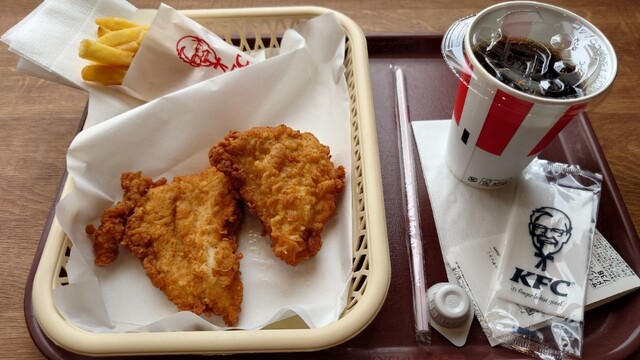 骨なしケンタッキー2&ポテトS\910⇒\590 ドリンクS\250⇒\120 ※アイスコーヒー 不意にケンタッキーが食べたくなったので、休日11時頃に来訪。 先客3名、... 詳細を見る