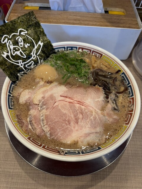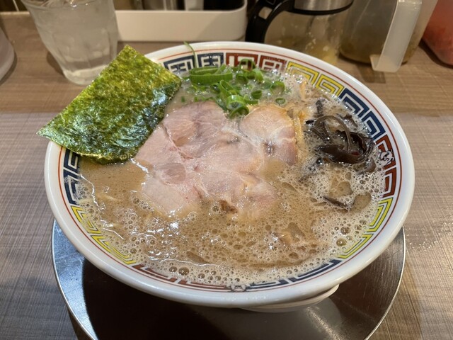 この度はチャーシューメン!券売機にチャーシューメンのボタンがないのでエキトン+チャーシューという買い方をする。スタッフからバラかロースかを訊かれるので、今回はバラにて。そしたらロース肉の下には分厚い肉がごそっと敷かれてる!でもまずはこれらを丼底に沈め、麺!替玉!替玉!といただく。ライス頼んだから替玉... 詳細を見る
