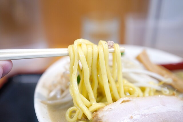 麺はちぢれ中太で短めカットのため啜りやすいです。もちっとして歯応え良く、...