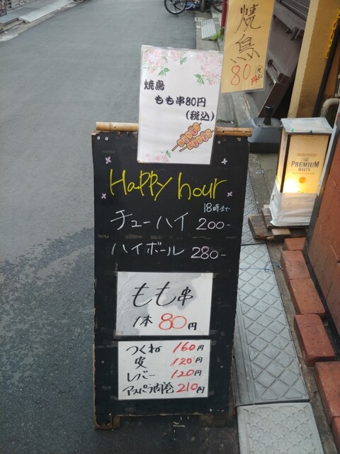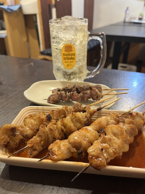 酎ハイとやきとりを数本(もも、レバー、とりかわ、シロ)頼みました。ハッピーアワーは酎...