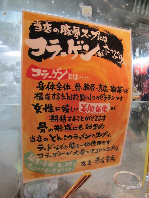 ☆豚骨ラーメン 900円 テラテラと褐色に鈍く輝くスープは前評判通りドロドロで、複雑な旨さを孕んでいる。 麺は太めのガシッとした感じ。一瞬とまどうが、濃厚ドロスープにはこれぐら... 詳細を見る