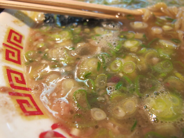 この濃いドロドロしたスープに麺が絡み、九条ネギはたまりません!あとはチャーシューもトッピングしたらもう昇天します!