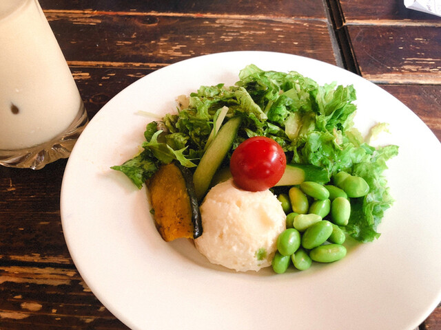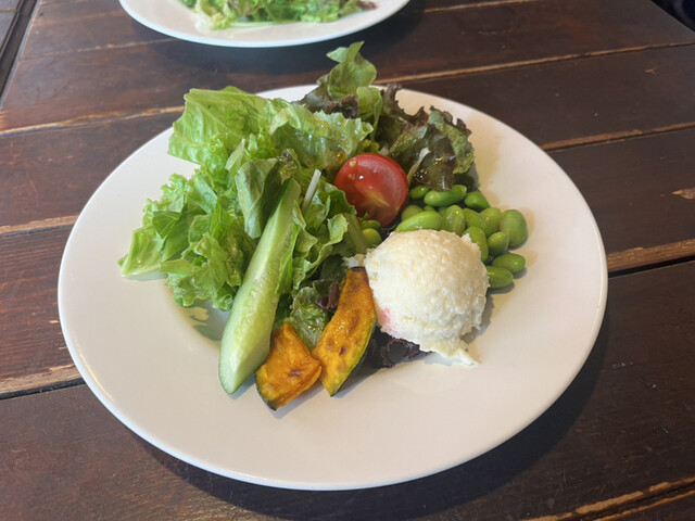 もちろんサラダとドリンクが付いたランチセット(100円)の注文も忘れずに。