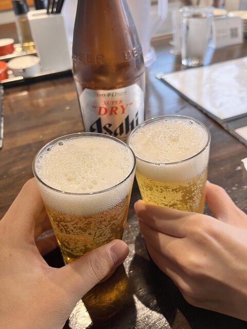 生ビール、焼き餃子、シソ餃子を注文しました。