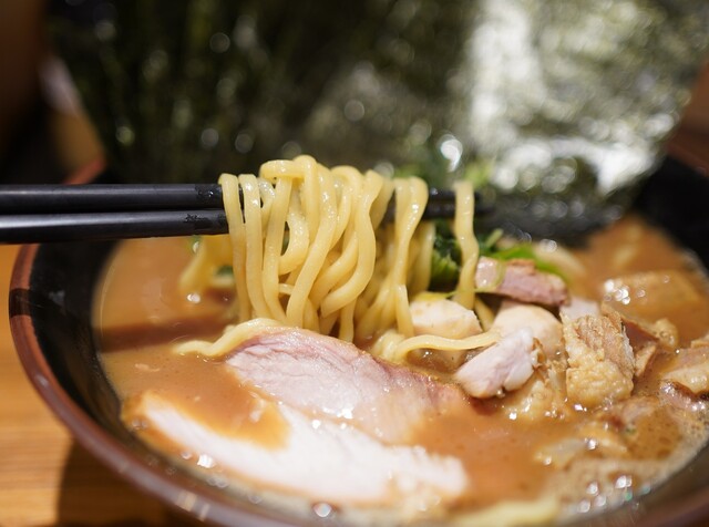 過日訪問分 12:05着で待ち無し スープは醤油先行型でキレキレというより 醤油辛さを非常に感じる味わい 鶏油の存在感はあまり感じられない 濃厚豚骨でも豚骨く... 詳細を見る