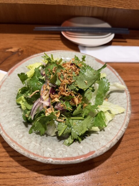 中井駅から徒歩1分ほど、 駅近の好立地に店を構えるタイ料理屋さん。 個人でやられているアットホームなお店です! パクチーサラダ、ガイヤーン、ソーセージ、 ガパオライスか... 詳細を見る