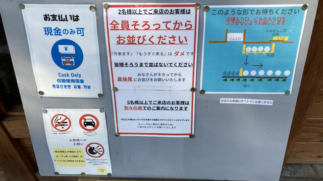 鶏清湯スープで人気の、らぁめんご恩。雪による荒天のためさすがに並びは少ないだろうと予測、休日11時15分着で外待ち7人目に並んだ。それでも一巡目の方が次々と食べ終わり、15分後に入店できた。