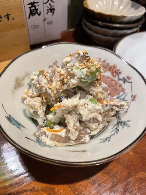 カウンターの狭い後ろを通って急な階段を上がるとちゃぶ台の座敷席が並ぶコンパクトな店内。 料理は一捻りあって悪くなかった。季節でメニューも変えている様子。 煙草を吸えると... 詳細を見る