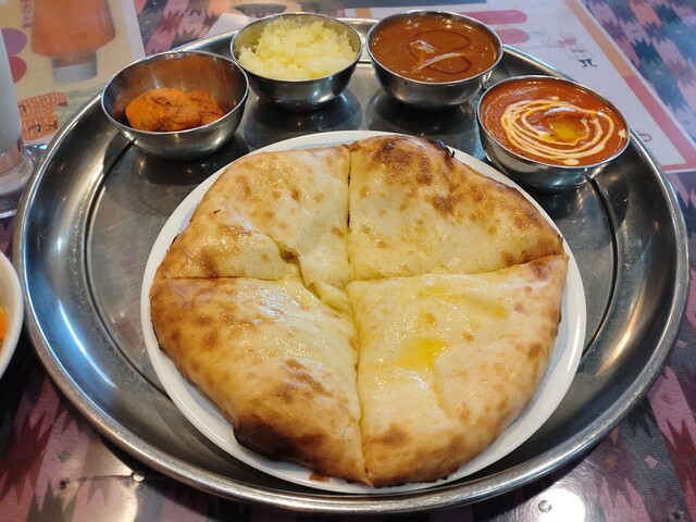 マトンカレーはお肉ゴロゴロ、チーズナンもチーズたっぷり!