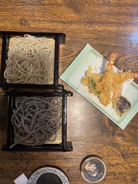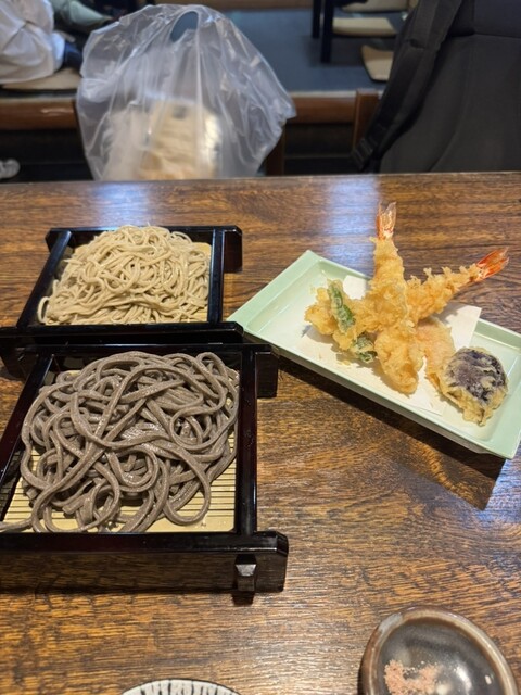 こちらは田舎もりとせいろもりのニ色の蕎麦盛り合わせ。