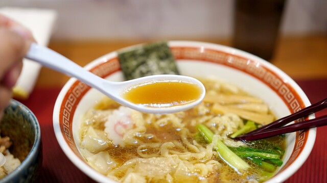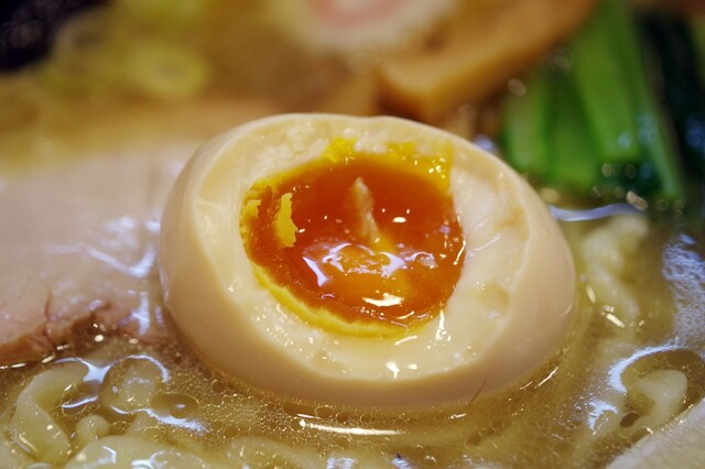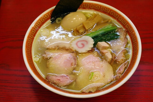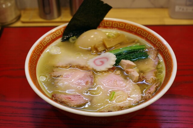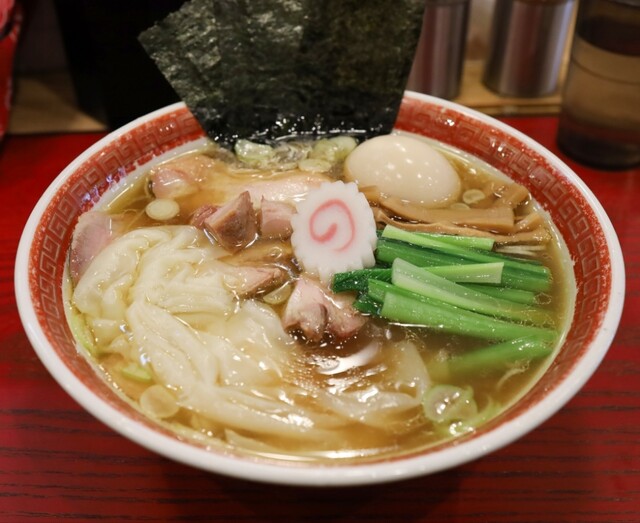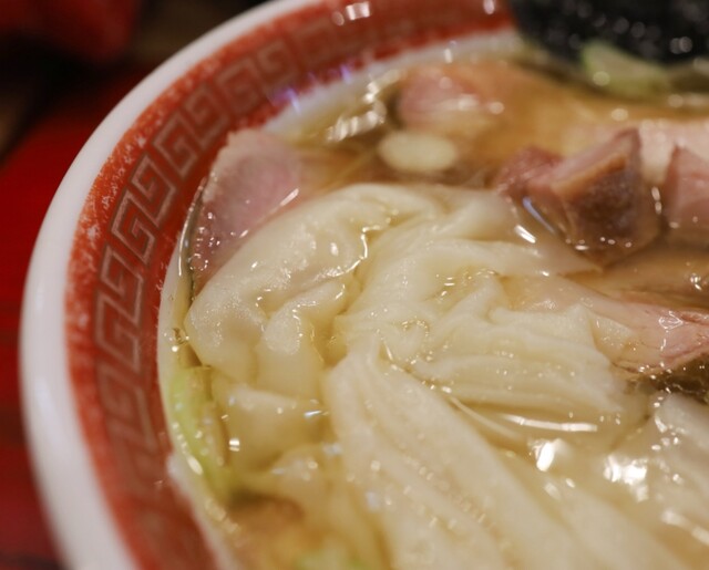 【注文】 ワンタンメン、味玉 --------------------------------------- 休日11時20分ごろ訪問 店内満席、中並び2名 食券を購入し、中待ち席に着席し待つ 入口の扉が閉まりにくく少しでも開いていると「ちゃんと閉めてください」と、 待ち席の座... 詳細を見る