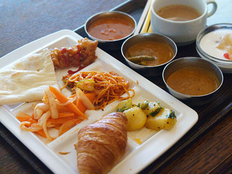 朝食会場にもなるスペースなので、店内は広め。カレーはなんと6種類!