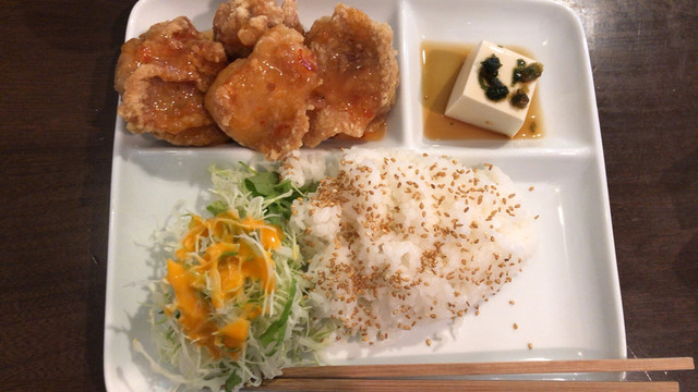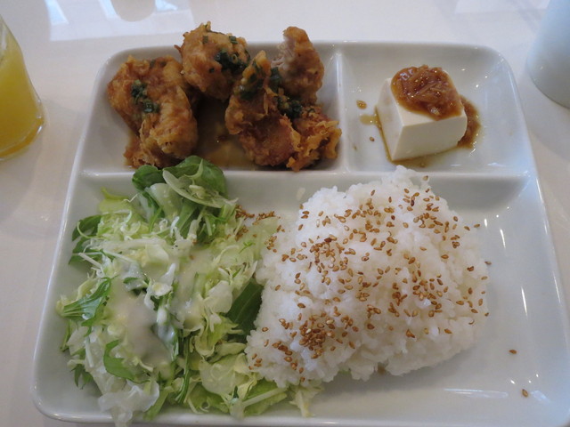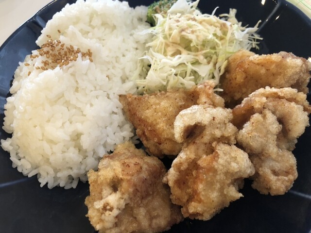 ごはん、大人メニューは唐揚げしかない(味は選べる)ですが、そこそこ美味しい!♡