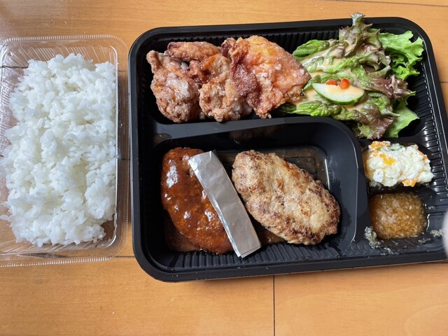 大谷口の水道タンクの近くのハンバーグ屋さん 面白い名前だと気になってた 口頭で注文 13分で提供 半分のハンバーグが2個 タレも2種類に生姜焼き、唐揚げ、カニクリのいずれかを... 詳細を見る