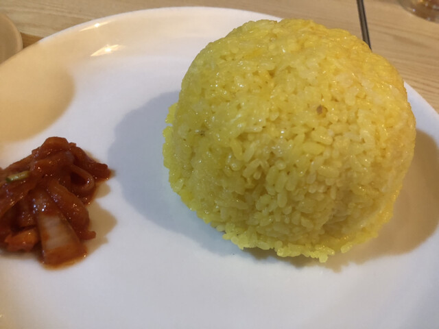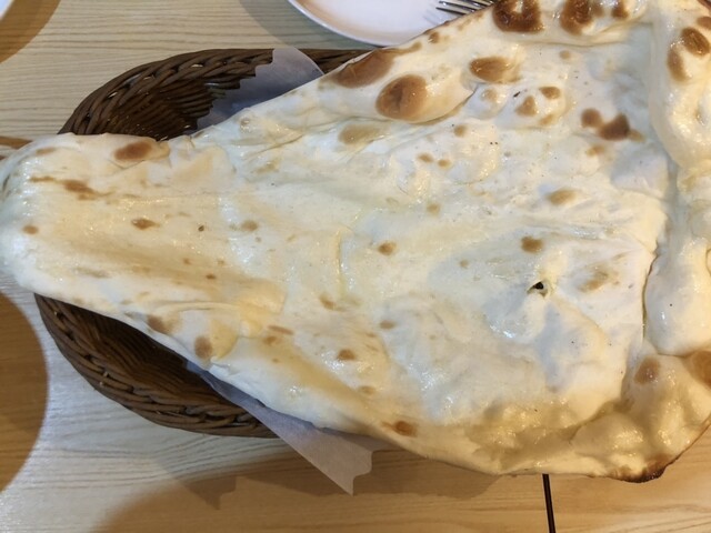 たっぷりサイズ。サフランご飯も立派。ナンは特大。鳥の骨外しながら、ナンで食べすすめます。ジンジャーも効いて、汗だくに。頭から汗が吹き出します。普通でこの辛さは、中辛にしたら・・・途中でごはんをディップ。これも美味しい。食べ進み最後はご飯をカレーに投入。辛さ控えめになりましてが美味。ボリューム満点でご飯とナンは若干残りました。