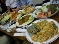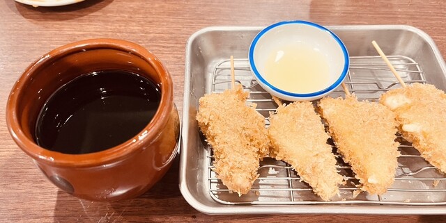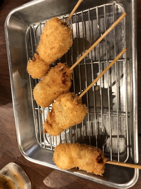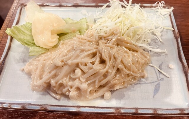 エノキのバター炒め、サラダ、唐揚げ、チヂミ、串揚げ、アサリ...