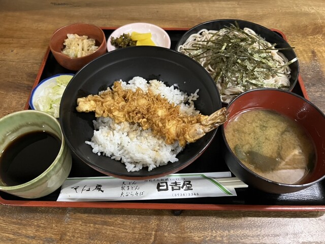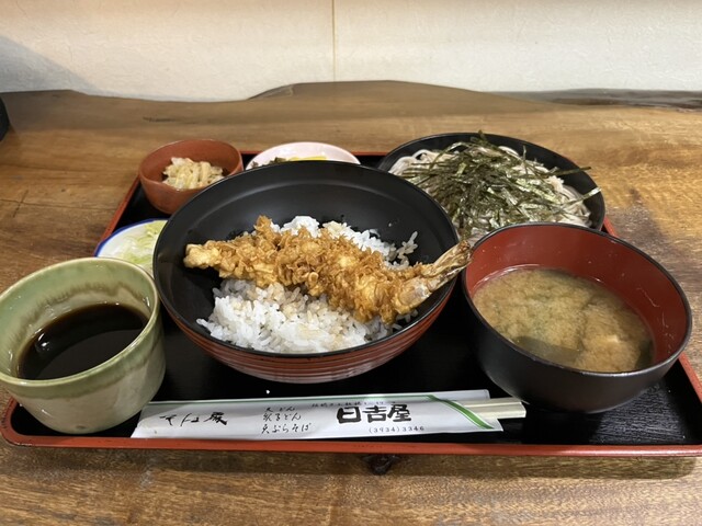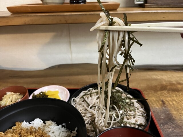 川越街道と旧道が交差する所にあるお蕎麦屋さん 店先には岡持ちが搭載されたバイクが もちろん口頭で注文 13分で提供 半天丼は見事に海老が真一文字に セットの蕎麦には珍しい海... 詳細を見る