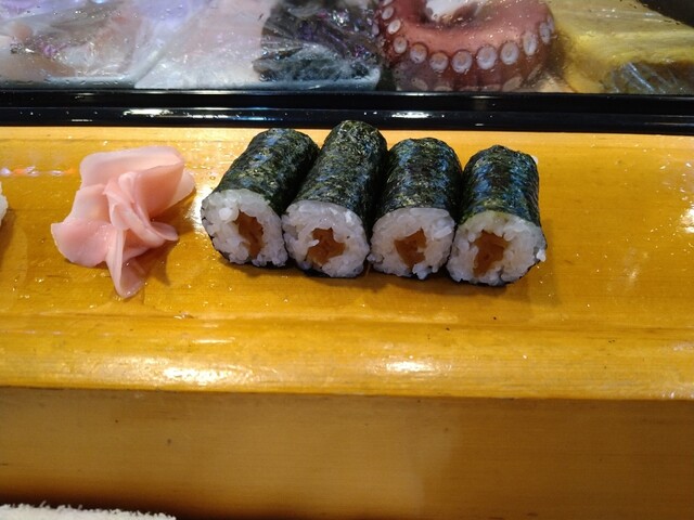 金目鯛は皮が湯引きされ食感が良く、金目特有の旨味が濃厚です。中トロは脂が甘くて口の中でとろ...