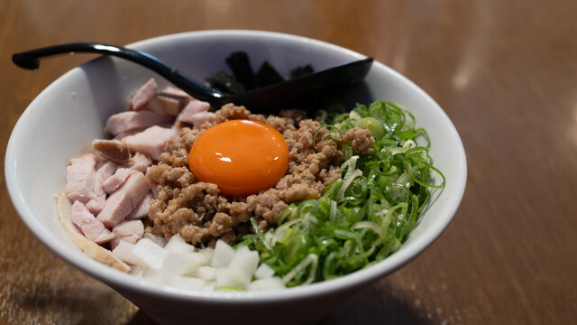 休日ランチの候補を探していたら、此方の店名が変わっていてびっくり。数か月ぶりに伺いました。 11:10到着ですでに店内8割の入り。ほどなくして満席に。 九条ねぎが生きたカレーまぜそばにしようかなと思っていたところ、券売機脇の貼り紙にあったこちらを選択。 【冷やニボ】1000円 お店のオー... 詳細を見る