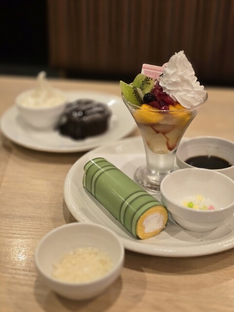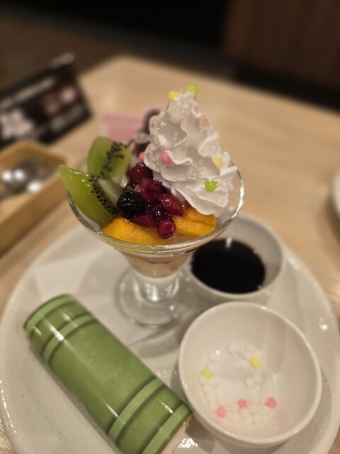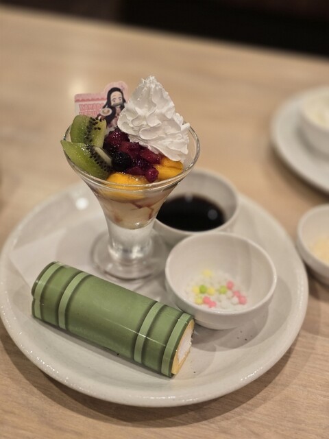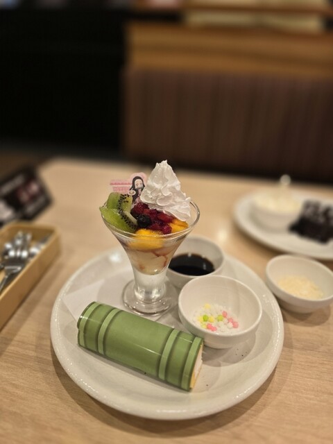禰豆子の竹筒ロールケーキとミニ金平糖あんみつプレート