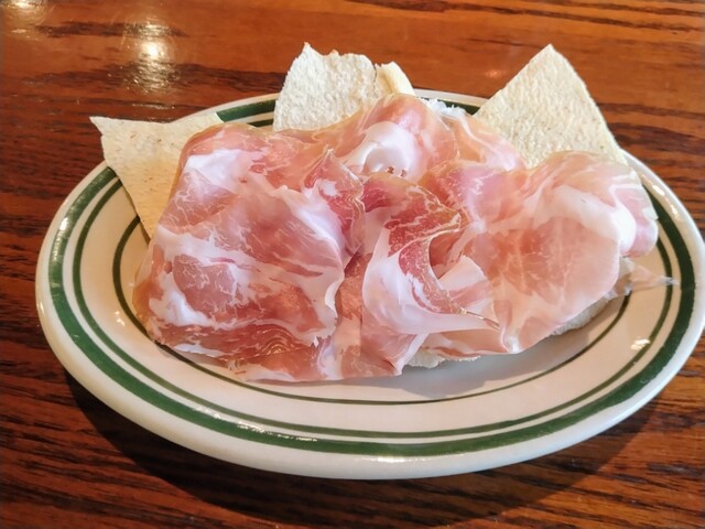 注文したのはほろ酔いセット、ワインと生ハムで1000円とコスパの良いメニュー。しかも登場した生ハムはクオリティも高く量もたつふり。これはお値打ちものですね。他も食べたくなったので枝豆とパスタ(ボロネーゼ)を追加。...