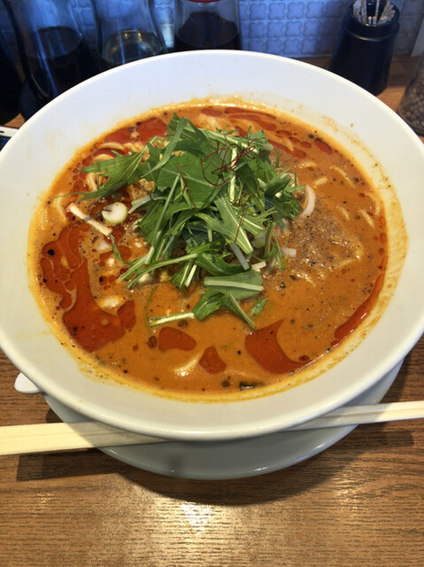 過日訪問分 12:10着で待ち無し 辛さ4でオーダーしたが、丁度良い辛さ 花椒振り放題サービスやってたので痺れは かなり増すことができる 黒胡麻の風味香る... 詳細を見る