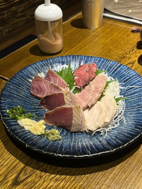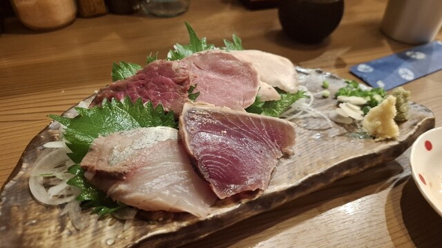 藁焼きの香ばしい香りにまず心をつかまれ、味も見た目も大満足のお店。特に印象的だったのが名物の「もののけ盛り」。ブリ、カツオ、肉3種のローストが一皿に盛られていて、どれも藁焼きならではの香りと旨みが凝縮...