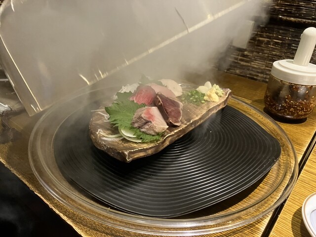 やっぱり燻製ってめちゃくちゃ美味しい!!!盛り合わせを頼みましたが、やっぱりお刺身が1番燻製の風味を楽しめます!店員さんからは提供に時間がかかるからスピードメニューを勧められたけど、なくてもよかったかも!