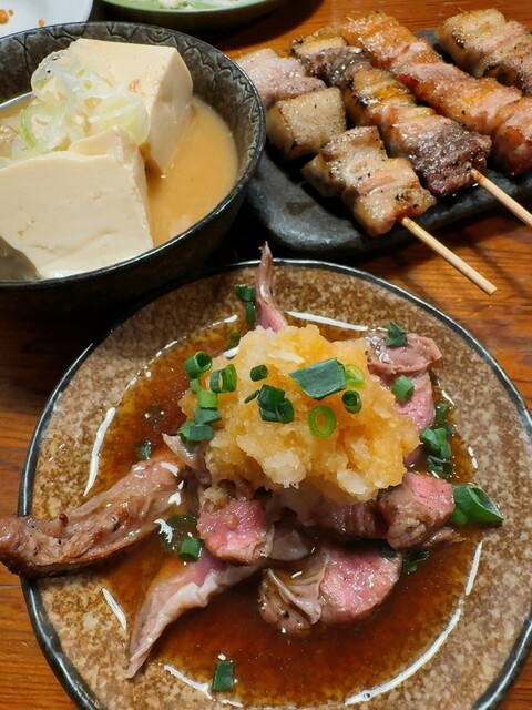 ハラミとねぎタン、煮豆腐&もつ煮込み、ポテサラは特にオススメ✨