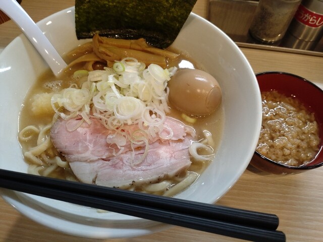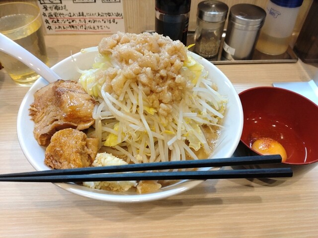 雷がゴロゴロ鳴ってる11:40頃到着 先客2名・後客1名。 二郎系を止め、リニューアルして初訪店。 入口右手の券売機で "ラーメン(並)➕味玉➕背アブラ(別皿)" ... 詳細を見る