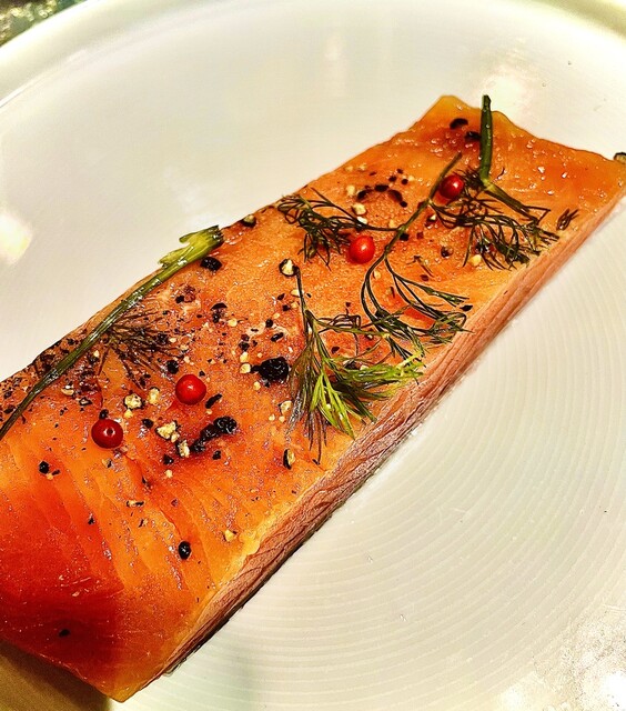 ランチで鮭のクリームパスタをいただきました!