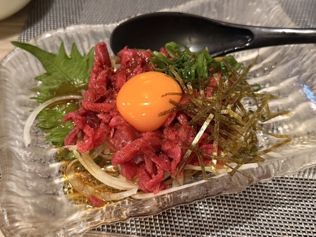 大好き馬ユッケ(980)と~、わさびなめたけ(380)と、つくね!