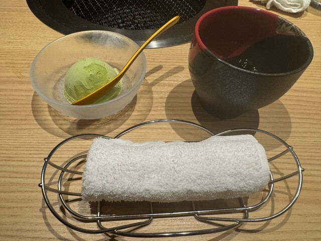 食後のサービスのアイスクリームとほうじ茶も◯。